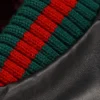 Upgrade your outerwear with this Black Leather Bomber Jacket, a standout piece blending Italian-inspired style with streetwear edge. Made from genuine leather, it features a green and red collar, ribbed cuffs, and a slim fit cut.